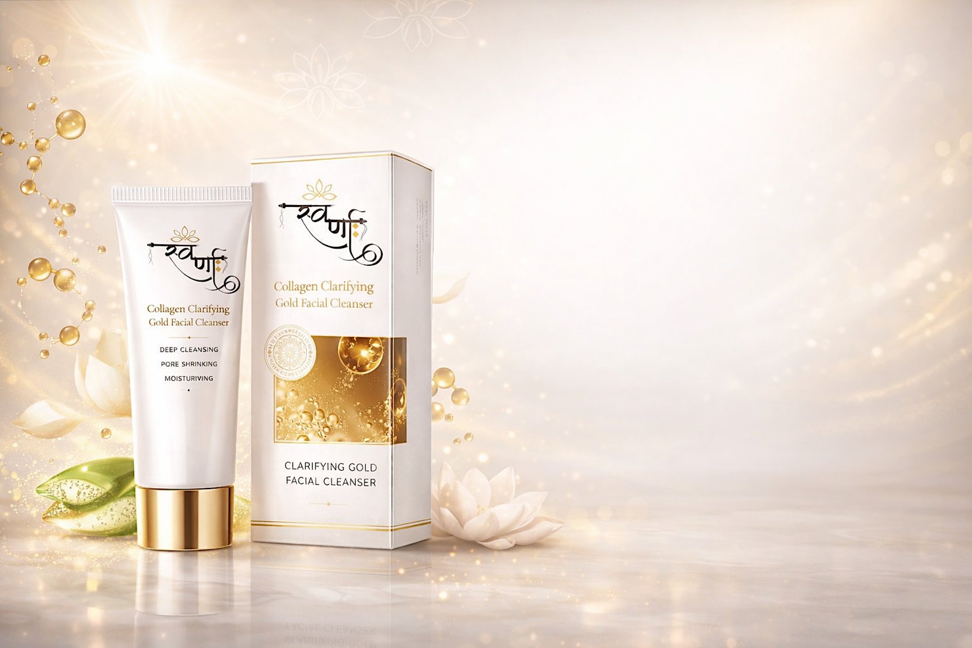 Infused with Ayurvedic herbs, collagen, and gold, our gentle face cleanser detoxifies, hydrates, and restores your skin’s natural glow.